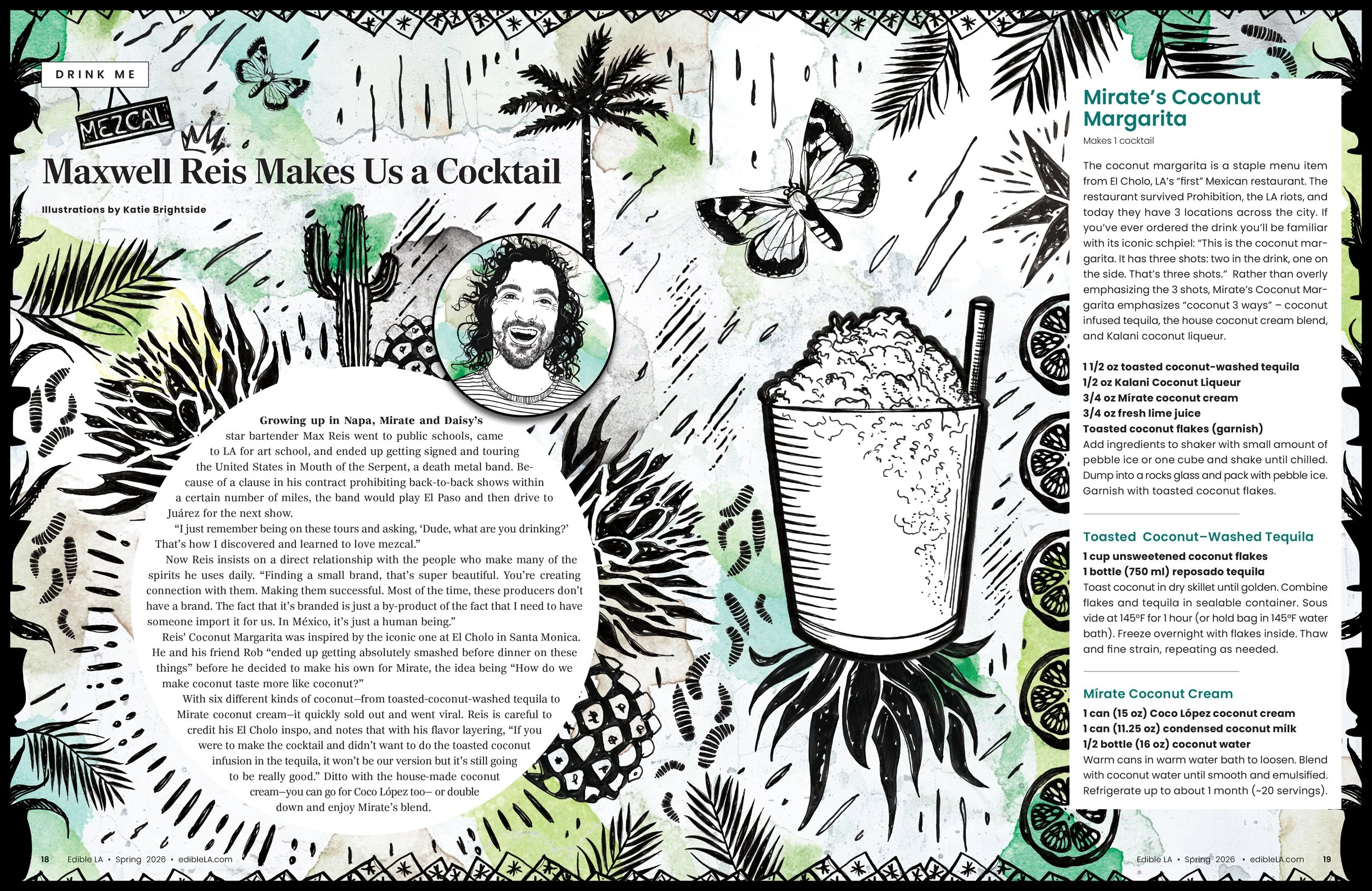 The Spring Drink Me column in Edible LA features Maxwell Reis, a true liquid scientist and bar director behind some of Los Angeles’ most exciting cocktail destinations. At Los Feliz’s Mirate—recently named Best Bar in California and the West Coast by North America’s 50 Best Bars and ranked #12 in North America—Reis continues to redefine the craft. He is also the creative force behind Sherman Oaks’ Daisy Margarita Bar, which, under his direction, has quickly earned major acclaim, including a 2026 James Beard Award semifinalist nod for Best New Bar and a spot on PUNCH’s Best New Bars of 2025 list.